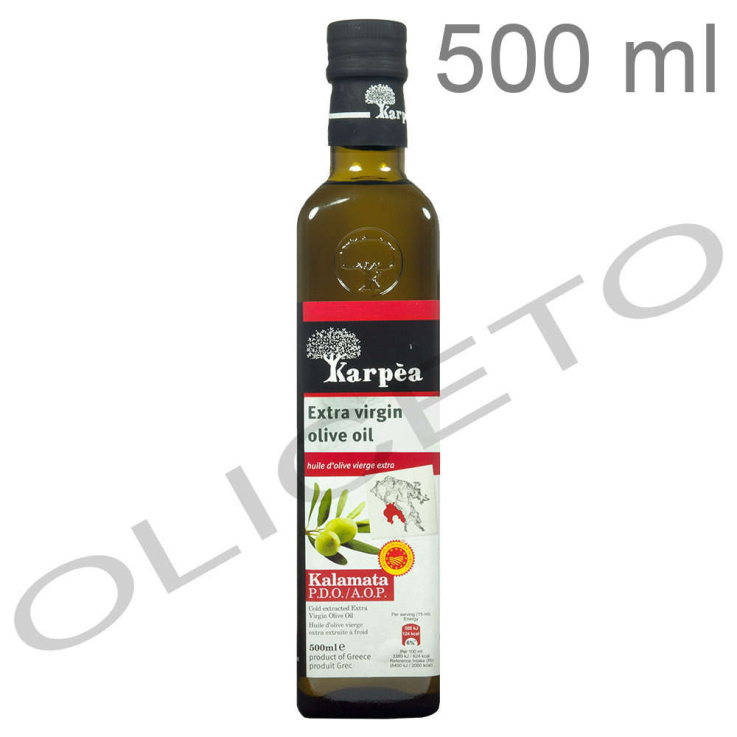 Huile d’olive extra vierge Kalamata AOP cépage 500 ml produit uniquement à partir de l’olive Koroneiki – Karpèa.