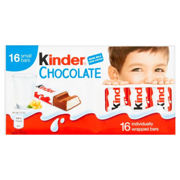 Each bar of Kinder Chocolate contains a delicious milky filling covered with a fine milk chocolate coating. The taste kids love in child friendly portions! 16 individually wrapped small bars of Kinder Chocolate, Made with more milk less cocoa, individually wrapped for freshness, Made with no artificial colors or preservatives.