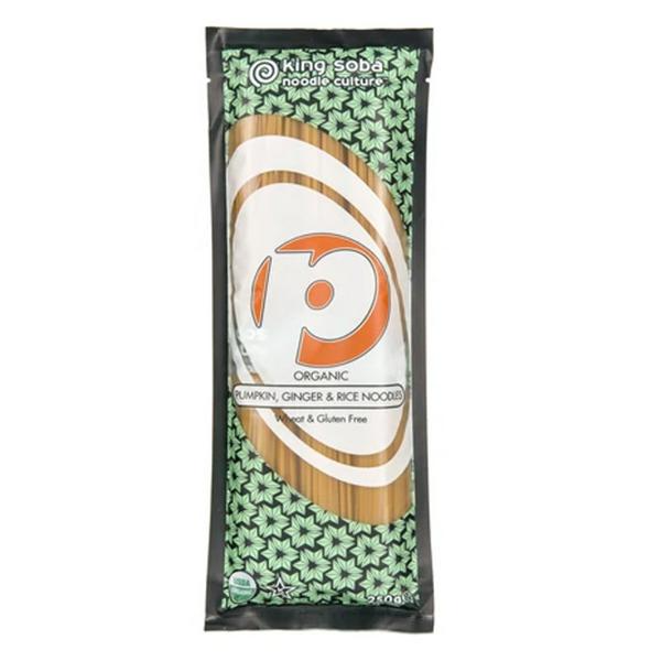 Organic Pumpkin & Ginger Brown Rice Noodles ingredients:Â Organic brown rice, organic pumpkin(5%), organic ginger.