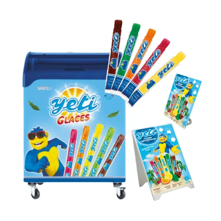 YETIGEL – Kit Meuble Congélateur Yetigel de 100 L + panachés de 4cartons de glaces à l’eau à congeler Yeti (soit 480 unités)