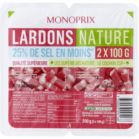 Lardons nature 25% de sel en moins