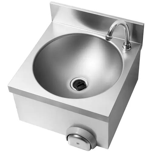 Lave-main à commande fémorale – Robinet compris – Acier inoxydable / laiton chromé – Bec de 140 mm