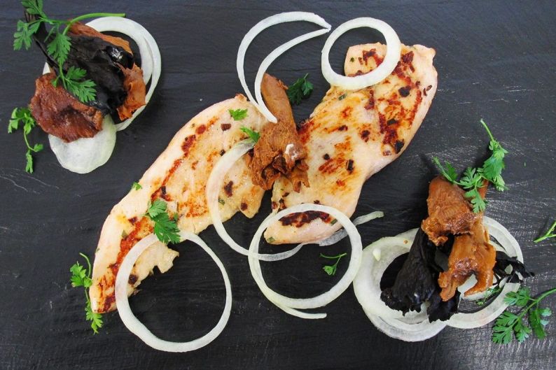 Lèche de filet de poulet marinée crème girolles
