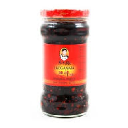 LGM or Lao Gan Ma chilli oil is a famous Chinese brand of chilli oil used throughout China. The jar feels like it contains more chillies than oil, filled to the brim with dried chillis, and the occasional peanut for extra flavour and texture.