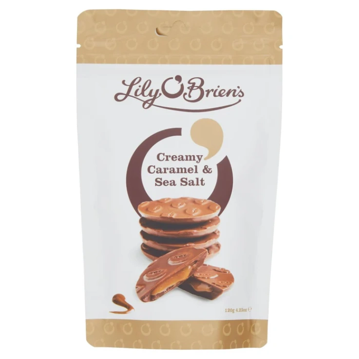 Devilishly handsome and super slick, this creamy choc is one smooth operator. A dash of sea salt lifts our beloved creamy caramel combined with milk chocolate to form the perfect treat! I can’t wait for you to tear open this bag and start the latest chapter of the Lily O’Brien story – a range of mouth-watering chocolate discs created for you to enjoy your favorite treat anywhere. Open the bag and melt into your perfect chocolate moment. Keep it just for yourself or share! And remember that your love for chocolate is at the heart of everything I do. You are part of the Lily O’Brien story too. Creamy Caramel & Sea Salt giant buttons. This product does not contain any artificial colors or flavors, this product is suitable for vegetarians