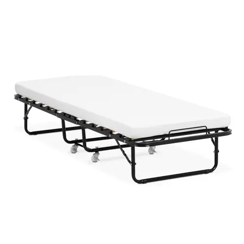 Lit d’appoint pliable avec matelas – 80 x 190 cm – 150 kg – à roulettes