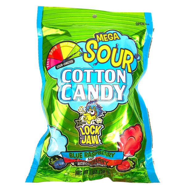 Lock Jaw Mega Sour Cotton Candy Blue Raspberry & Strawberry Flavor