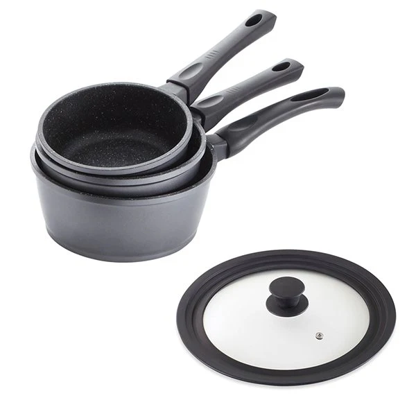 Le manche est en bakélite ergonomique. Les 3 casseroles passent sur tous les types de feux dont l’induction.