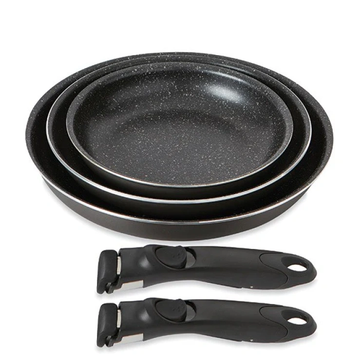 Lot 3 poêles anti-adhésives Effet Pierre et 2 manches amovibles Mathon