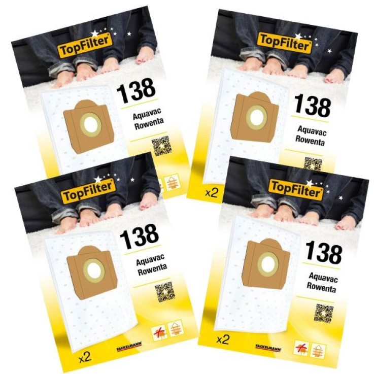 Lot de 4 packs de 2 sacs aspirateur 64138 pour Rowenta industriel Premium TopFilter
