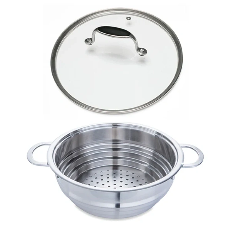 Lot panier vapeur multidiamètre et couvercle en verre Excell’Inox 24 cm Mathon