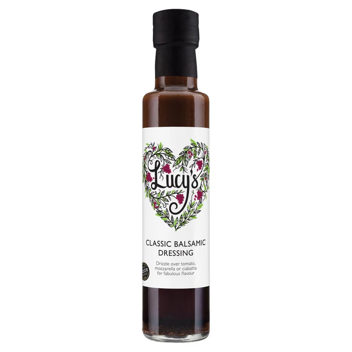 Our Great Taste award winning Classic Balsamic dressing is a delicious combination of extra virgin olive oil and balsamic vinegar, sweetened slightly with a dash of honey. Why not try drizzling over tomato, mozzarella, or ciabatta for fabulous flavor. Lucy’s was started from Lucy’s kitchen from her desire to transform simple and fresh ingredients into something much more exciting. So, whether it’s salad, veg, or fish, our award-winningly versatile dressings will add a hint of deliciousness to almost any dish. Gluten and dairy free, Vegetarian.
