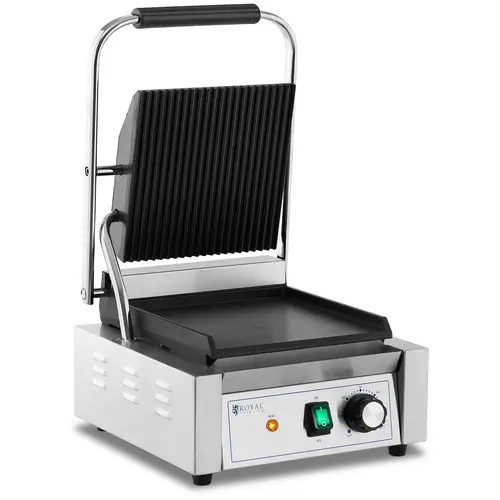 La machine à panini de Royal Catering est un appareil de cuisson professionnel conçu pour les restaurants d’hôtels, les établissements de restauration rapide et les services de traiteur, mais aussi pour les utilisateurs privés. Ses plaques de cuisson sont idéales pour préparer un grand nombre de plats carnés ou végétariens, mais aussi de sandwiches et paninis.
