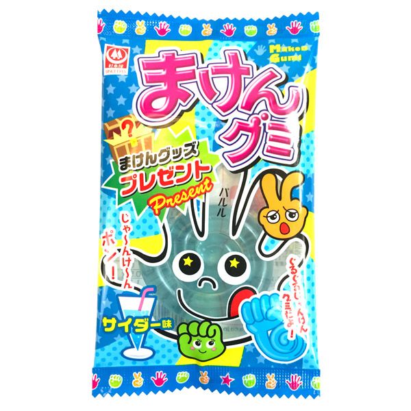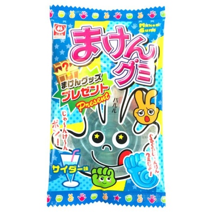 This gummy has a roll up gummy arm that has three possible different hands on the end for rock, paper, or scissors. This ramune-flavored gummy is best enjoyed with friends, where none of you know what each person has until you open the package. Settle arguments with this candy!