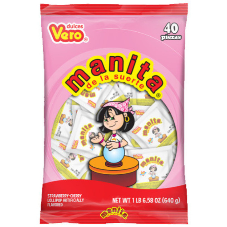 Kleine handvormige lollies met aardbeien- en kersensmaak. Een lekkere traktatie komt altijd van pas als je behoefte hebt aan iets zoets!