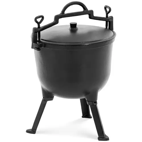 Le four hollandais en fonte est votre nouveau multitalent ! Cuire, faire cuire et frire dans une casserole. Que ce soit en camping ou en barbecue, dans la restauration ou à titre privé, la marmite rustique en fonte a tout ce qu’il faut pour cuisiner : Couvercle, suspension, 3 pieds stables pour mijoter sur du charbon chaud. De plus, l’intérieur est émaillé.