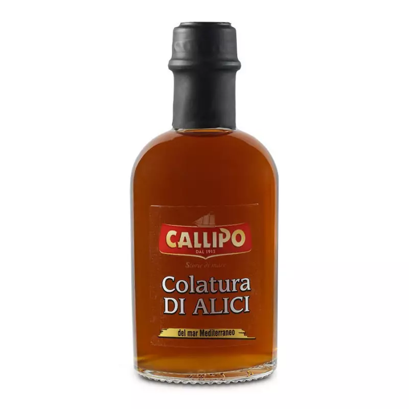 Colatura di Alici del Mar Mediterraneo Callipo 100ml is a speciality obtained from anchovies fished in the Mediterranean Sea. During pressing and maturation under salt, the liquid that rises to the surface is collected and subjected to a natural process of concentration, resulting in an amber-coloured product with a full-bodied flavour that preserves the authentic aroma of salted anchovies. Perfect for enhancing seafood dishes without adding salt, colatura di alici is ideal for seasoning garlic, oil and chilli spaghetti, sautéed vegetables, tomatoes, eggs and olives. Packaged in a practical glass jar with a drip stopper, it is a refined and versatile ingredient to enrich every recipe with the authentic taste of the Mediterranean.