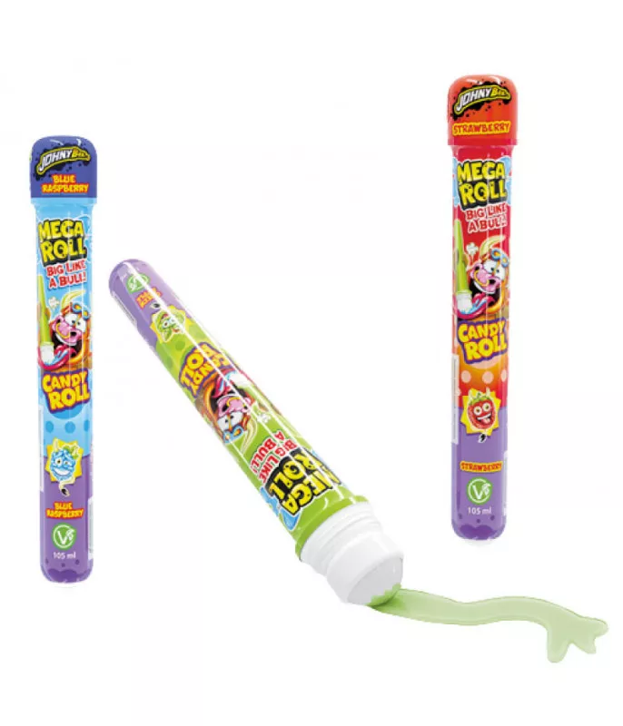 JOHNY BEE – Bonbon liquide aromatisé dans un tube Roll-on (à bille) à lécher – Vendu en gros conditionnement dans un présentoir de 12 pcs