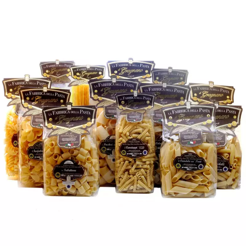 A Megapack that celebrates the goodness of Pasta di Gragnano IGP: 13 packages of 500gr in assorted sizes all different, for all tastes and condiments.