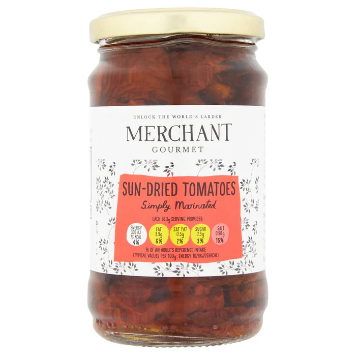 Sun Dried Tomato (57%), Sunflower Oil (40%), Salt, Wine Vinegar
