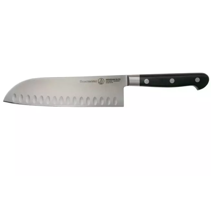 Le santoku Messermeister Meridian Elite est un couteau de cuisine tranchant comme un rasoir et pratique. Le santoku est un couteau de cuisine originaire du Japon. C’est la version japonaise du couteau de chef européen. Ce couteau allie le style japonais à la robustesse allemande. Tout comme un couteau de chef, vous utilisez le santoku pour couper la viande, le poisson et les légumes.