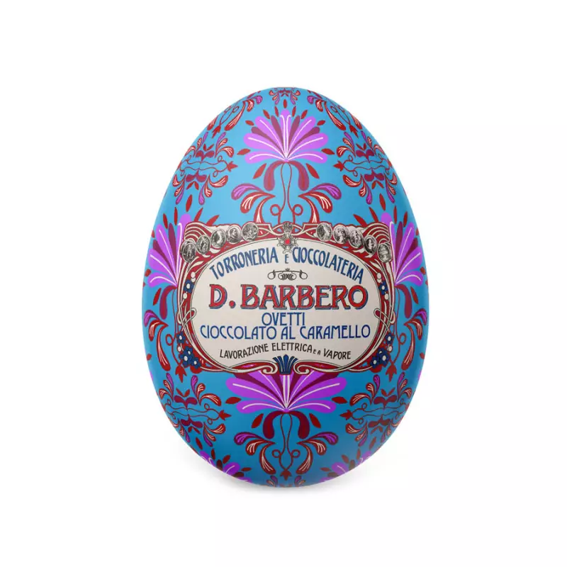 The Barbero Metal Egg tin with Caramel Chocolate Eggs is a delicious creation that combines the unique taste of artisanal chocolate with the deliciousness of caramel. The little eggs, the fruit of the mastery of Piedmontese chocolate maker Barbero, offer an enveloping taste thanks to the perfect balance between the creamy sweetness of caramel and the refinement of chocolate. Perfect as an Easter gift for those who love the richest and most mouth-watering confectionery combinations, this egg also impresses with its packaging thanks to the box decorated in bright colours, which adds a touch of cheerfulness and elegance.
