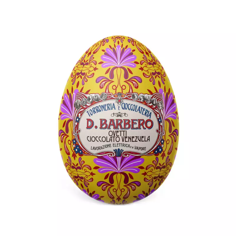 The Barbero Metal tin Egg with Dark Chocolate Eggs Venezuela 72% is an exclusive creation that combines tradition and refinement. The small eggs, fruit of the art of handcrafted chocolate processing by Piedmontese chocolate maker Barbero, encapsulate the authentic flavour of Venezuelan cocoa, known for its intense aromatic notes of dried fruit and spices. Perfect as an Easter gift idea for artisanal chocolate lovers and connoisseurs, this egg surprises not only for the quality of its contents, but also for its packaging: a brightly coloured decorated tin, which will make the gift even more unique and special.
