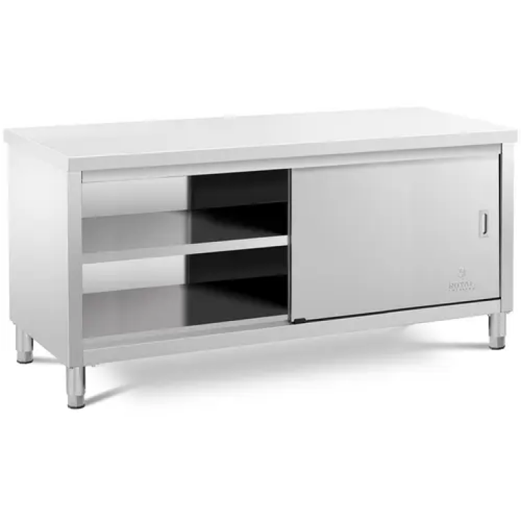 La surface de travail de 180 x 60 cm de cette armoire moderne en acier inoxydable vous offre suffisamment d’espace pour travailler au quotidien avec des aliments frais, des ingrédients et des appareils de cuisine. L’association ingénieuse de la surface de travail et du meuble de rangement permet un large éventail d’utilisations et garantit une cuisine rangée en permanence. Équipée de deux portes coulissantes pratiques et peu encombrantes, l’armoire de travail est particulièrement recommandée dans les cuisines étroites. Les ustensiles placés derrière les portes coulissantes faciles à utiliser restent propres et sont rangés en toute sécurité.