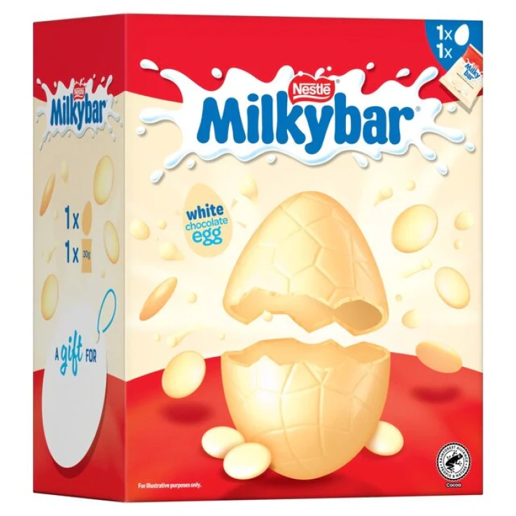 Deliciously creamy Milkybar® white chocolate large Easter egg, Comes with a bag of Milkybar® white chocolate buttons!, Perfect for sharing or gifting this Easter, No artificial colours, flavours or preservatives, Rainforest Alliance Certified cocoa