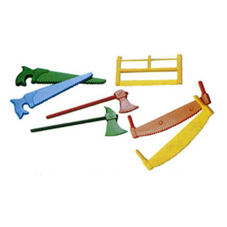 Boîte de 500 haches et scies de couleur jaune, rouge, verte et bleu pâle. Spécialement conçues pour la décoration de la traditionnelle bûche de Noël. Produit non comestible pouvant entrer en contact avec les aliments.