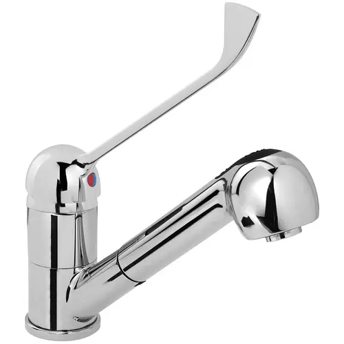 Le robinet de cuisine MO-TA-15 offre un confort d’utilisation élevé, car il est muni d’un mitigeur à levier unique lequel mélange l’eau chaude et l’eau froide, d’un bec pivotant et d’un flexible de 1200 mm. Qu’on l’installe dans une cuisine professionnelle ou privée, dans une école ou ailleurs encore, il facilite le travail et favorise le maintien d’une propreté irréprochable grâce à son mitigeur et à sa douchette extractible.