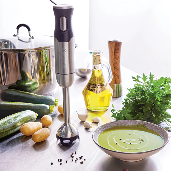 Polyvalent, ce mixeur plongeant 1000 W Mathon vous accompagne dans toutes vos recettes de cuisine ou de pâtisserie : sauces, purées, veloutés, desserts ou boissons, laissez libre court à vos envies !