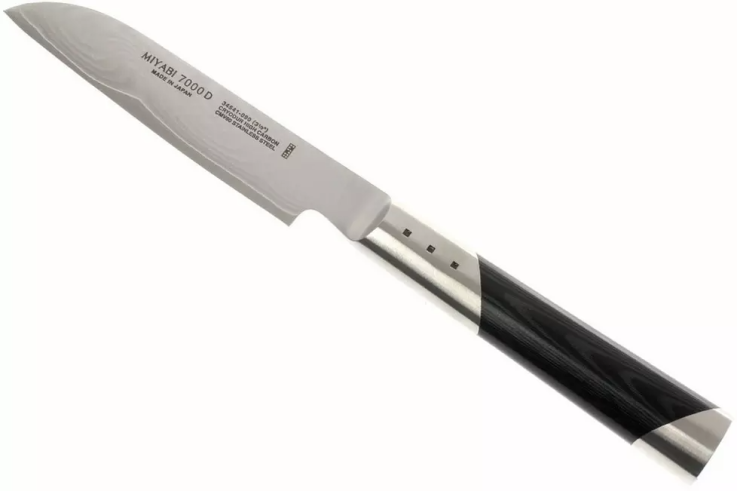 Le Miyabi by Zwilling kudamono de la collection 7000D est un couteau à légumes qui allie d’excellentes propriétés de coupe à un design irrésistible. Seuls les meilleurs matériaux ont été utilisés dans la création de ce beau couteau. Le couteau a été affûté en trois phases selon les méthodes traditionnelles japonaises, ce qui se traduit par un angle d’affûtage ne dépassant pas dix degrés. D’une netteté imbattable !