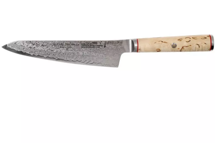 Le Miyabi 5000MCD shotoh 14 cm provient de l’usine Zwilling JA Henckels à Seki au Japon. Le manche ergonomique en forme de D en bois de bouleau Masur et le beau dessin d’acier Damas sur la lame sont particulièrement remarquables.