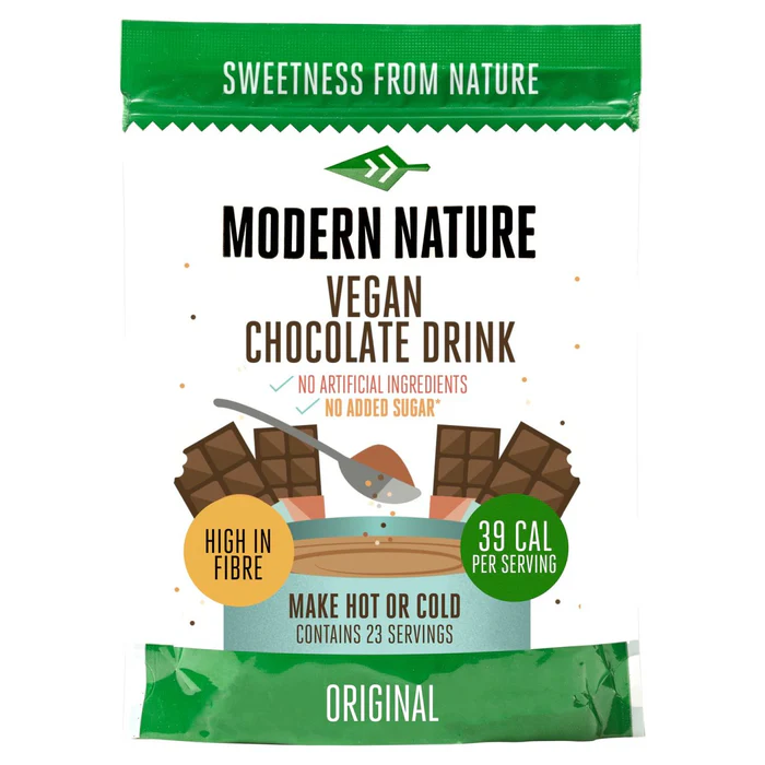 Looking for a delicious healthy way to get your chocolate fix? Look no further than Modern Nature! Our instant vegan chocolate drink is made with rice milk and natural ingredients. As it only has 39 calories per serving & being high in fibre it’s the perfect guilt free treat. Because it doesn’t contain any dairy milk, it’s perfect for those who are lactose-intolerant or follow a plant-based diet. Plus, it’s sweetened with stevia so there’s no need to worry about added sugar, perfect for those on a keto, diabetic, low sugar or low-calorie lifestyle. Best of all, our vegan chocolate drink can be made hot or cold. So why not treat yourself a rich and delicious hot chocolate or milkshake, or add it to porridge and protein shakes. Our rich and creamy hot drink is sure to satisfy your sweet tooth.