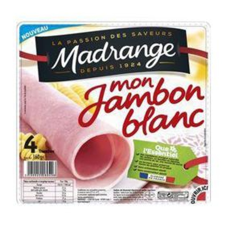 Mon jambon blanc découenné dégraissé Viande de Production Française MADRANGE, 4 tranches, 160g