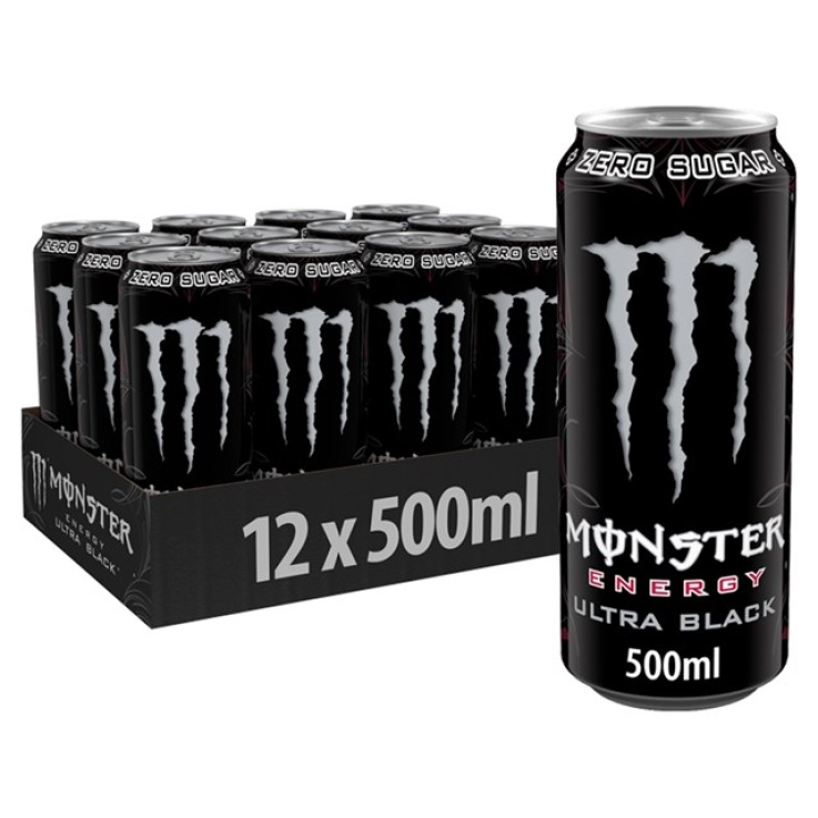 Monster Energy Drink Plain Pack Ultra Black 500ml (12 Pack)