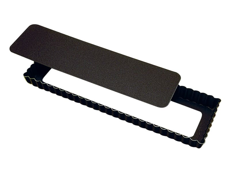 Moule à tarte maison à revêtement anti-adhérent. Bord cannelé, fond mobile. Ce moule est homologué sans PFOA.