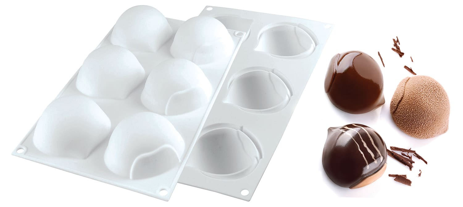 Réalisé en silicone platinium 100% fabriqué en Italie, ce moule 6 marrons résiste aux températures allant de -60°C à +230°C, garantissant ainsi des résultats parfaits aussi bien dans une cellule de refroidissement ou congélateur, que dans un four.