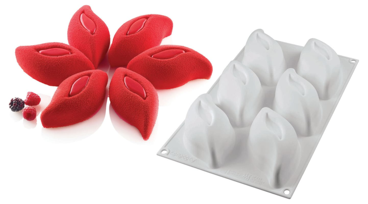 Grâce aux propriétés anti-adhérentes du silicone, le démoulage de vos 6 pétales se fera facilement. Il ne vous restera plus qu’à ajouter la finition de votre choix : fruits frais, glaçage, perlé velours….
