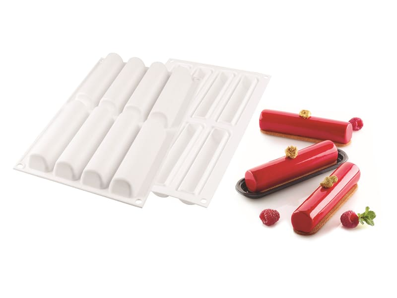 Grâce aux propriétés anti-adhérentes du silicone, le démoulage de vos 8 cylindres se fera facilement. Il ne vous restera plus qu’à ajouter la finition de votre choix : fruits frais, glaçage, perlé velours….