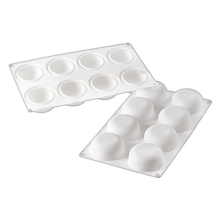 Réalisé en silicone platinium 100% fabriqué en Italie, ce moule 8 ronds bombés résiste aux températures allant de -60°C à +230°C, garantissant ainsi des résultats parfaits aussi bien dans une cellule de refroidissement ou congélateur, que dans un four.