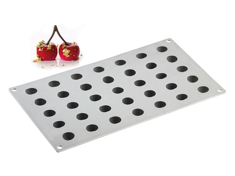 Moule souple en silicone platinium, 35 empreintes en forme de cerise.