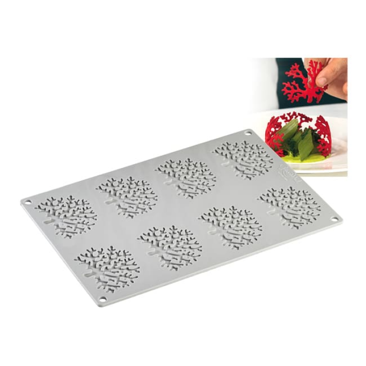Moule souple en silicone platinium, 8 empreintes forme corail.