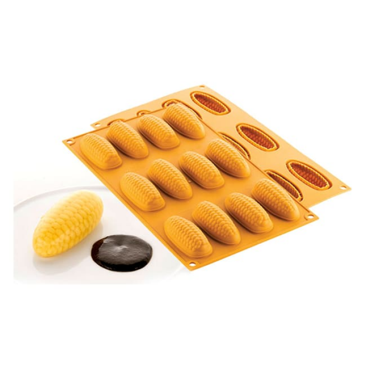 Moule souple en silicone, 12 empreintes forme épis de maïs.
