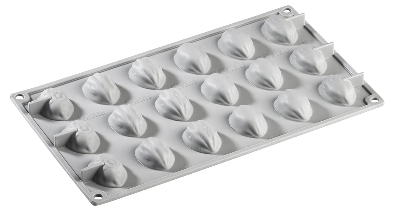 Moule souple en silicone platinium, 18 empreintes en forme de noix.