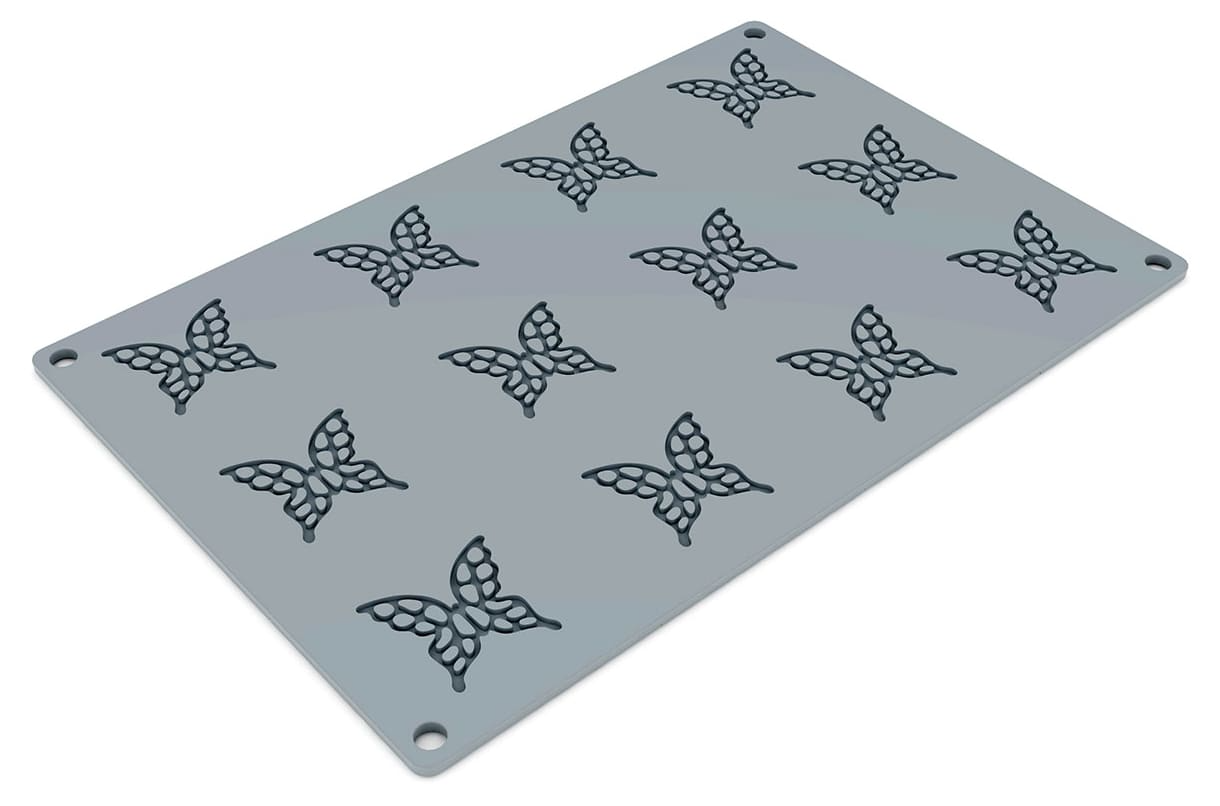 Moule souple en silicone 100 % platinium, pour le décor d’entremets en forme de papillon. Parfait pour un rendu unique et personnalisé de toutes vos créations.
