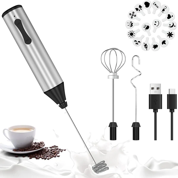 【Mousser a lait Plus Rapidement et Mieux】Ozvavzk mousseur à lait peut produire une mousse riche en seulement 15 à 20 secondes! Le moteur puissant et silencieux intégré vous permet (vitesse: 8000 à 12000 tr/min), à vous et à votre famille, de passer une matinée calme et paisible. Commencez votre journée avec une tasse de délicieux café !!!【Simple à Utiliser】Le mélangeur à café a un design “one touch” et vous pouvez régler la vitesse de mélange en appuyant sur le bouton “ON” pour obtenir l’effet de mousse souhaité. Comprend 3 fouets multifonctions & 16 gabarits de café, vous permettent de créer d’exquis motifs de guirlande de café à tout moment et en tout lieu.【Longue Durée de Vie de La Batterie】Ce mousser le lait rechargeable ne nécessite que 3 heures pour une charge complète et dure de 2 à 3 mois (câble de charge USB-C inclus). Facilement rechargeable via un ordinateur, un portable, une banque d’alimentation, un chargeur USB et un adaptateur de téléphone portable.【Facile à Nettoyer】Le mousseur à lait électrique est fabriqué en acier inoxydable 304 de qualité alimentaire, durable, résistant à la rouille et facile à laver. Il peut être nettoyé à l’eau et au savon ou rincé à l’eau courante après utilisation. Le corps en acier inoxydable n’est pas étanche et peut être essuyé avec un chiffon, mais pas lavé.