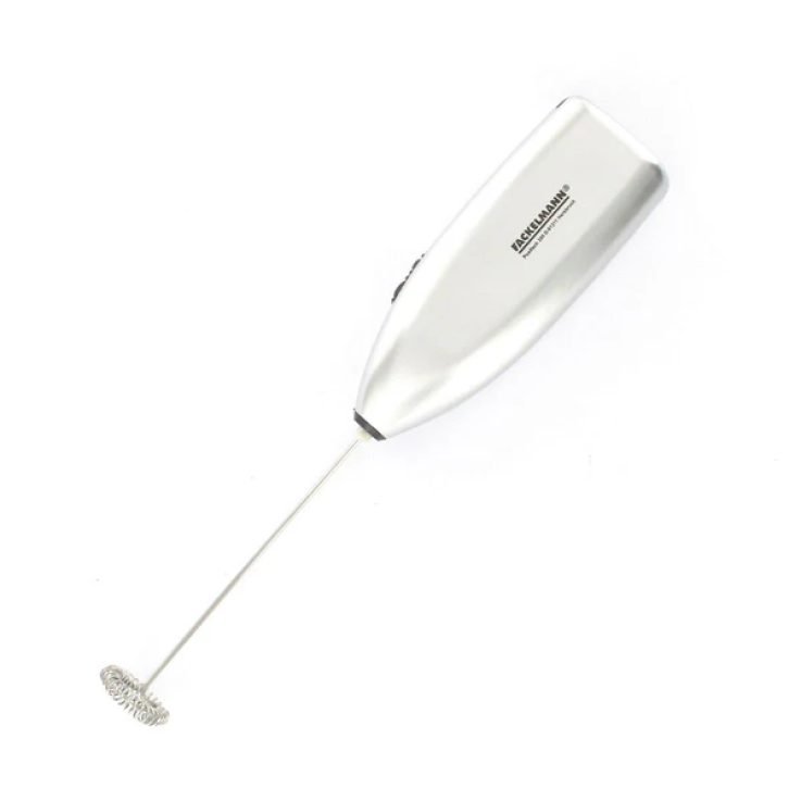 DESCRIPTION : Mousseur à lait électrique parfait pour réaliser des mousses onctueuses pour parfaire vos cappuccinos, cafés et chocolats ! Vous allez adorer réaliser vos boissons chaudes vous-même ! MODE D’EMPLOI : Le principe est simple : versez un peu de lait au-dessus de votre boisson puis mettez en marche le mousseur plongé dans le lait, vous allez voir une délicieuse mousse se former petit à petit COMPOSITION : Acier inoxydable, plastique DIMENSIONS : 20 cm CONTENU : 1 mousseur à lait Le mousseur à lait proposé par Fackelmann contient des piles, il est très pratique pour faire de la mousse de lait à ajouter dans votre café pour former un délicieux cappuccino. Vous pouvez également émulsionner le lait de votre chocolat chaud afin de le rendre plus léger.