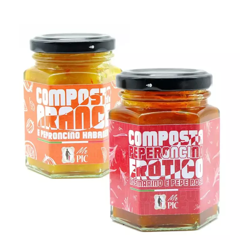 Mr Pic Spicy Compotes set: Oranges and Habanero Chilli and Erotico® Chilli, Rosemary and Pink Pepper 110 gr x 2